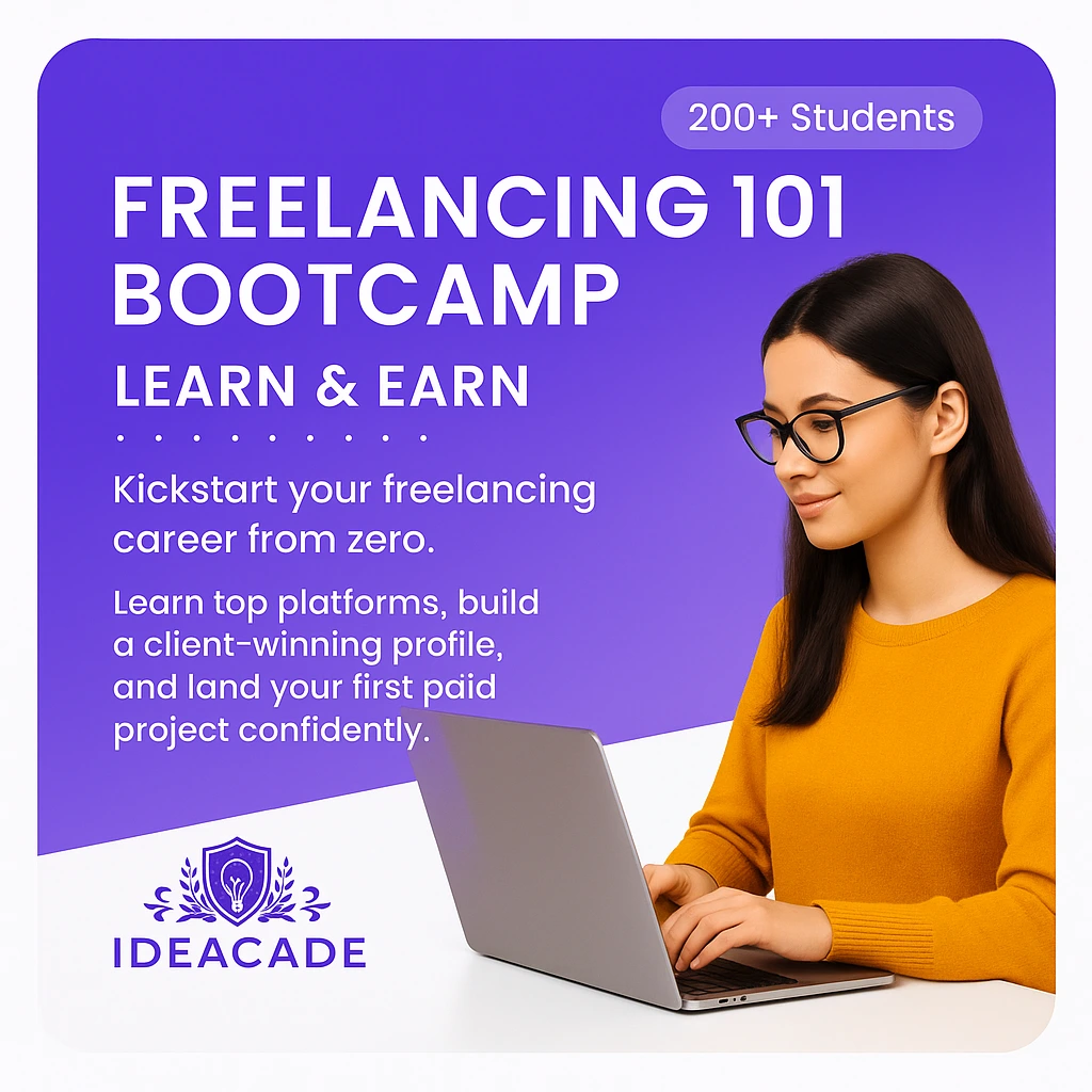 Unlock the secrets to earning online with Ideacade’s Freelancing 101 Bootcamp. This beginner-friendly program covers everything you need to start freelancing the right way.